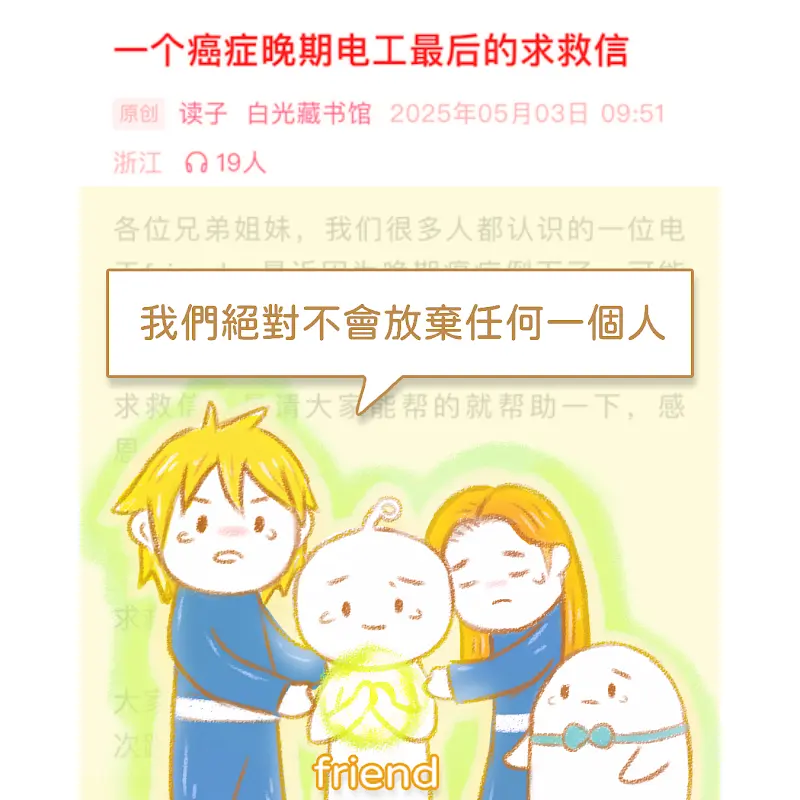 如果大家有話想傳遞給friend或有其它幫助他的方法,也能夠在底下留言,製片人會請夥伴幫忙轉達