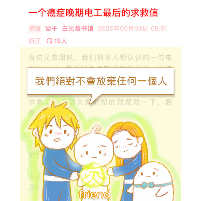 各位兄弟姐妹,我們很多人都認識的一位光工friend,最近因為晚期癌症倒下了,可能活不了多久。